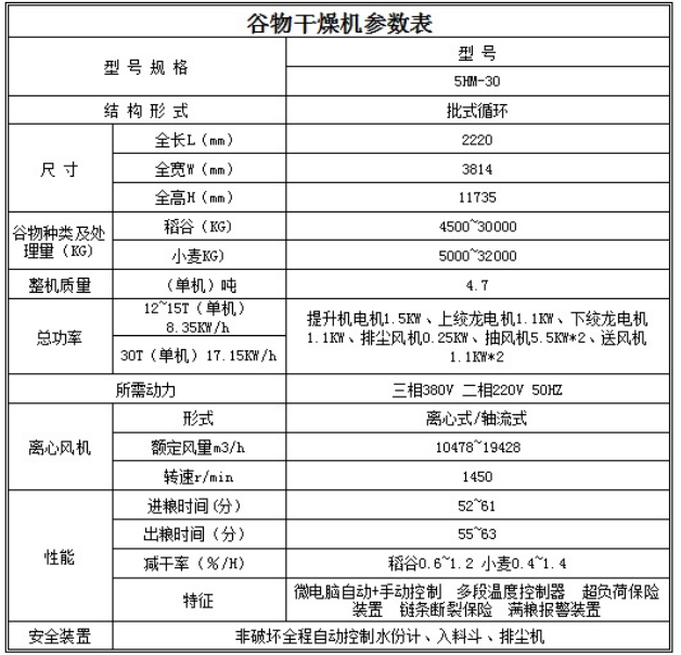 2. 強(qiáng)制分散裝置及多支排糧輪定量下料循環(huán),薄層大風(fēng)量,谷物干燥均勻,干燥效率高。