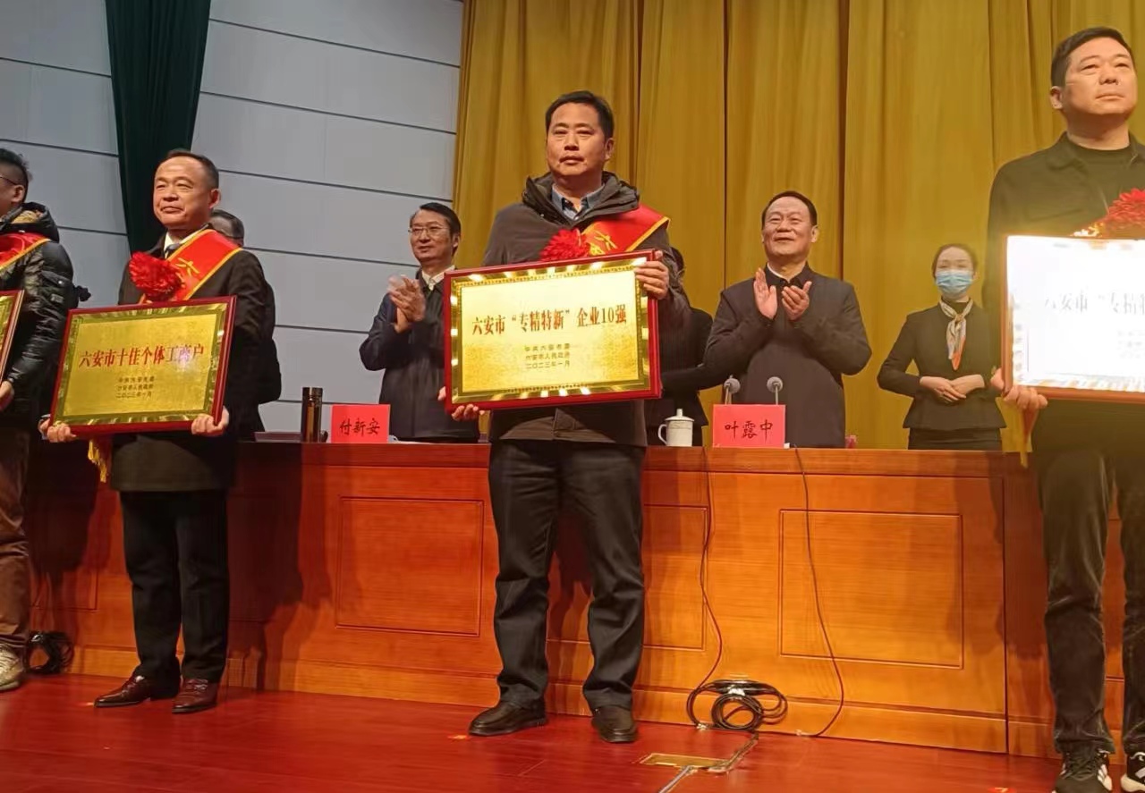 2023年1月29日上午,發(fā)揚自我革命精神 堅持嚴(yán)的基調(diào)全市持續(xù)深化“一改兩為”全面提升工作效能大會在市行政中心大會堂隆重舉行,國家級專精特新"小巨人"企業(yè)-安徽正陽機(jī)械科技有限公司再獲六安市“專精特新”企業(yè)10強(qiáng)榮譽稱號,六安市委書記葉露中親自為我公司授牌。